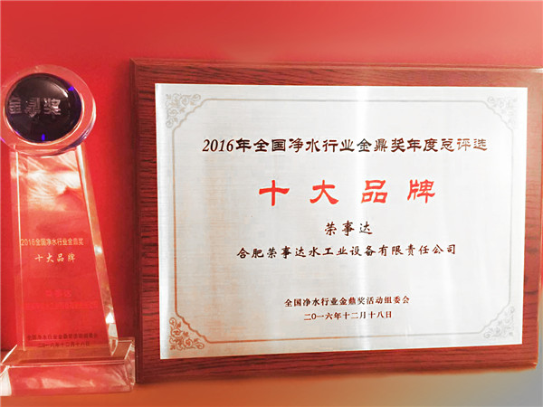 金鼎獎評審委員會由主辦方領導、凈水行業專家、消費者代表、第三方調研機構及大眾媒體組成,歷時半年,綜合考慮企業的銷售業績、生產能力、產品創新以及消費者品牌認知度和忠誠度等多個方面,評選出具有代表性的企業,榮事達榜上有名,榮獲“全國凈水行業十大品牌”、“全國凈水行業技術創新企業”。