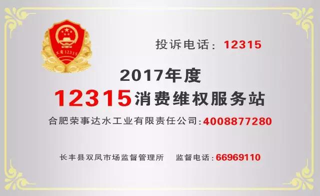 為了更好地貫徹中國消費者協會消費維權主題、切實保護消費者合法權益,合肥市工商部門及12315指揮中心特授權榮事達水工業公司成為“12315消費者維權服務站”、“12365質量監督服務站”,履行消費者維權和質量監督服務工作。