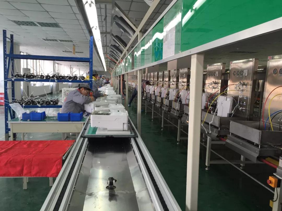 無塵車間內(nèi)配備的國(guó)內(nèi)先進(jìn)的凈水機(jī)自動(dòng)化生產(chǎn)線正處于工作狀態(tài),可編程控制器(PLC)自動(dòng)、轉(zhuǎn)向、垂直升降輸送產(chǎn)品;自動(dòng)倍速鏈輸送,節(jié)拍控制,大幅提高了生產(chǎn)效率。榮事達(dá)凈水器生產(chǎn)線日產(chǎn)能是一般生產(chǎn)線的3到4倍,在高速運(yùn)作的生產(chǎn)線上,工人們或迅速熟練地安裝產(chǎn)品零配件;或聚精會(huì)神地檢查儀表數(shù)值;或仔細(xì)認(rèn)真地核查包裝箱內(nèi)物品是否齊全,在注重生產(chǎn)效率的同時(shí)嚴(yán)把產(chǎn)品質(zhì)量關(guān),對(duì)每一個(gè)生產(chǎn)環(huán)節(jié)的操作都一絲不茍,力求實(shí)現(xiàn)產(chǎn)能、品質(zhì)的雙豐收。