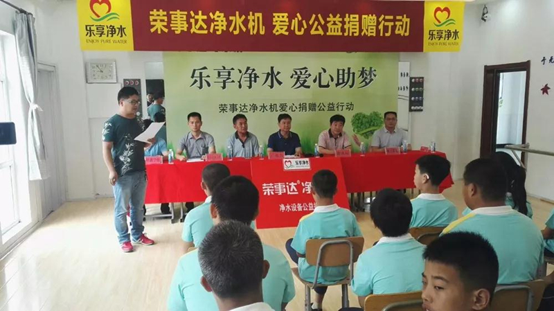 - 6月7日上午,榮事達“樂享凈水”愛心團隊走進河北省河間市,向河間特殊教育學校捐贈了多臺凈水設備。河間市教育體育局、城關教委、河間廣播電視臺等單位領導參加了捐贈儀式。  - 據了解,河間市特殊教育學校共有師生100多人,學生多為聽障、智障兒童。由于學校是寄宿制,大部分孩子吃住都在學校,日常飲水主要依靠宿舍內老式開水器,十分不便。此次榮事達所捐凈水設備采用RO反滲透技術和五級過濾系統,可高效濾除水中重金屬和其他有害物質,現制現飲,健康安全,保證全校師生飲水無憂。