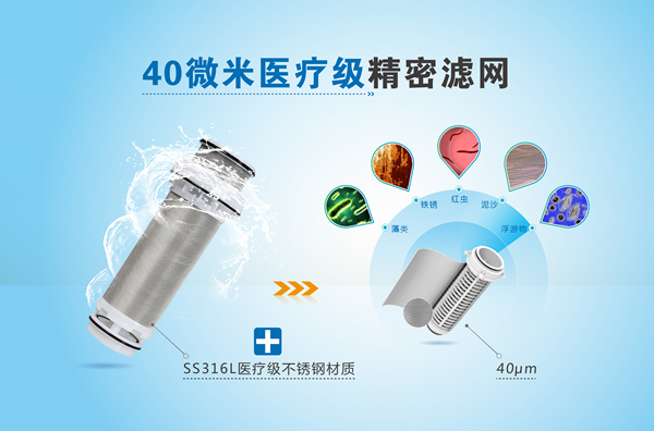 榮事達(dá)對于配件的優(yōu)化不止于此。為保證其擁有更高效的凈水能力,五款智能前置過濾器摒棄市場上大多使用的90、100微米濾網(wǎng),選擇過濾精度更高的40微米精密濾網(wǎng),可以充分?jǐn)r截水中紅蟲、鐵銹、泥沙、懸浮物等雜質(zhì),其獨特的SS316L醫(yī)療級材質(zhì),進(jìn)一步保證使用放心。此外,超大定制濾網(wǎng)出水速度快,其中第六代新品濾網(wǎng)展開面積是普通前置過濾器的3倍以上,出水流量能夠達(dá)到8噸每小時,可滿足更多用水需求。