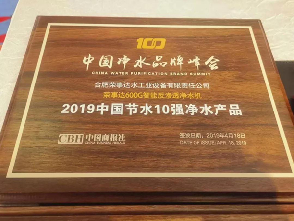 - 喜訊|熱烈祝賀榮事達榮獲“2019中國凈水10強企業(yè)”、“2019中國節(jié)水10強凈水產(chǎn)品”兩項大獎