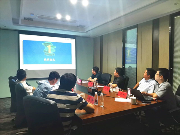 隨后,污水處理總經理王帆也從洗消廢水、養殖及生活污水、企業生態鏈三個方面對畜禽養殖污水處理工程進行了綜合匯報。王總針對養殖過程中產生的各類污染物難題,全面介紹了榮事達“無虞”系列污水處理設備。物化、生化、固體綜合利用等一體化處理工藝運用,有效實現畜禽養殖污水的排放回用。同時,王總進一步提出“畜禽污物生化制肥與周邊種植飼料回補”的循環互利解決方案,再次贏得調研組的全面好評。