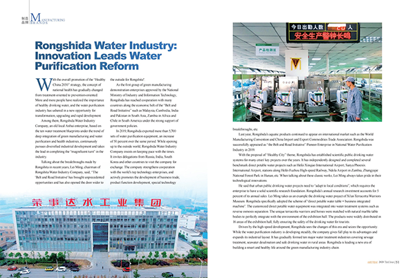 談起近年來榮事達(dá)所取得的突破,榮事達(dá)水工業(yè)公司董事長雷鳴表示:“‘一帶一路’戰(zhàn)略帶來了前所未有的機遇,也為榮事達(dá)打開了更廣闊的海外大門”。作為國家工信部首批綠色制造示范企業(yè),榮事達(dá)在政府政策大力支持下,與東南亞馬來西亞、柬埔寨,南亞印度、巴基斯坦,非洲贊比亞,南美洲智利等“一帶一路”經(jīng)濟(jì)帶上多國達(dá)成合作。2019年,榮事達(dá)凈水設(shè)備貿(mào)易出口逾5700臺,同期增幅達(dá)50%。 而在對外開拓的同時,榮事達(dá)水工業(yè)公司堅持與時俱進(jìn),邀請俄羅斯、印度、韓國等各國考察團(tuán)走進(jìn)公司參觀交流,并與全球頂尖技術(shù)企業(yè)加強合作,積極促成商務(wù)貿(mào)易、產(chǎn)品功能開發(fā)、專項技術(shù)突破等發(fā)展。去年,榮事達(dá)水工業(yè)產(chǎn)品持續(xù)亮相世界制造業(yè)大會、中國進(jìn)出口商品貿(mào)易會等國際舞臺。憑借企業(yè)在外貿(mào)領(lǐng)域的突出引導(dǎo)性,2019年榮事達(dá)成功獲評“全國凈水行業(yè)一帶一路先鋒企業(yè)”,贏得行業(yè)一致肯定。
