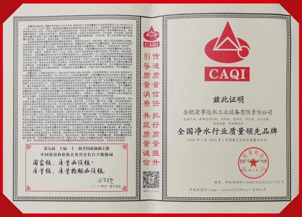 在中國質量檢驗協(xié)會主辦的2023年“3.15”產(chǎn)品和服務質量誠信承諾的主題活動中,榮事達憑借過硬的實力,獲得協(xié)會以及權威專家的一致認可,榮膺“全國凈水行業(yè)質量領先品牌”“全國產(chǎn)品和服務質量誠信示范企業(yè)”“全國質量檢驗穩(wěn)定合格產(chǎn)品”“全國消費者質量信譽保障產(chǎn)品”多項榮譽。