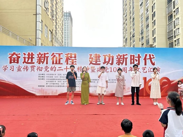 當日正值中共安徽長豐(雙鳳)經開區工作委員會、中共安徽(長豐)雙鳳經濟開發區鳳巢社區總支部委員會舉辦學習宣傳貫徹黨的二十大精神暨建黨102周年文藝匯演,榮事達水工業公司黨支部受邀參加了此次活動。
