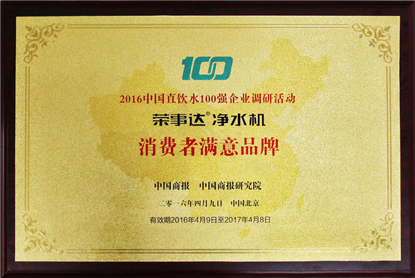 評審委員會由主辦方領(lǐng)導(dǎo)、凈水行業(yè)專家、戰(zhàn)略媒體、行業(yè)媒體、第三方調(diào)研機(jī)構(gòu)及消費(fèi)者代表組成,用國際通行方式,歷時(shí)三個(gè)多月,依據(jù)中國商報(bào)研究院發(fā)布的權(quán)威、公正,有影響力的凈水企業(yè)調(diào)研報(bào)告,綜合考慮消費(fèi)者對于品牌的認(rèn)知度、忠誠度及美譽(yù)度,評選出包括美的、3M等在內(nèi)的百強(qiáng)企業(yè),榮事達(dá)名列前茅,榮獲“中國直飲水10強(qiáng)企業(yè)”、“消費(fèi)者信賴企業(yè)”、“中國凈水行業(yè)十佳服務(wù)商”、“消費(fèi)者滿意品牌”多項(xiàng)大獎(jiǎng)。