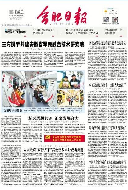 - 中共合肥市委機關報《合肥日報》頭版專題報道由國家工信部指導、榮事達獨家承辦的全國大企業“雙創”現場交流會活動