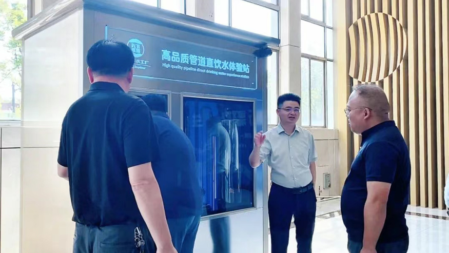 隨后,考察團在工程總經理王兵的陪同下,前往榮事達管道直飲水示范小區實地考察,親身感受項目的實際運行效果。