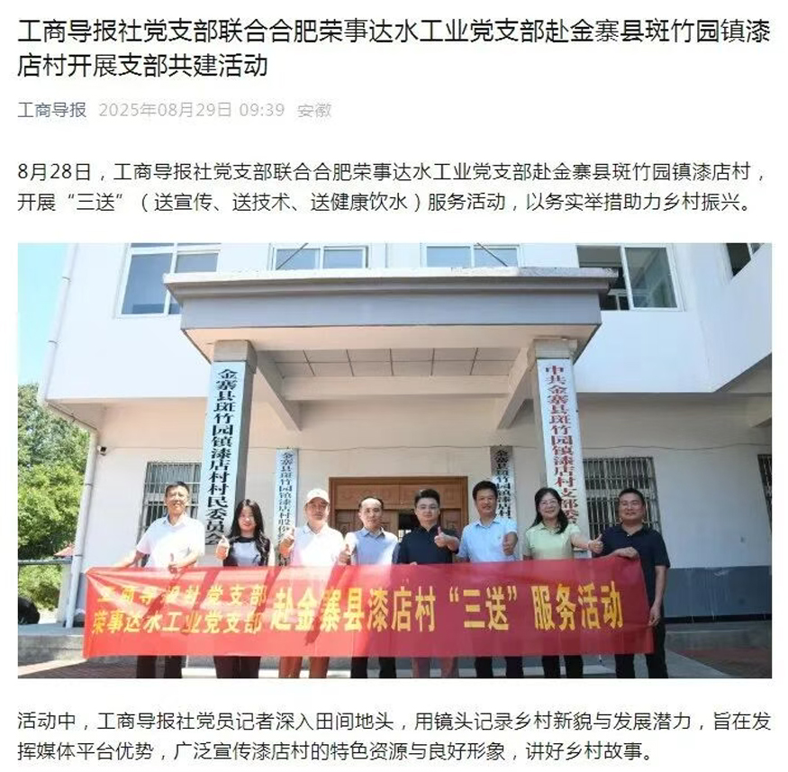 • 榮事達水工業公司黨支部攜手工商導報社黨支部:持續助力金寨縣漆店村,共筑鄉村振興夢
