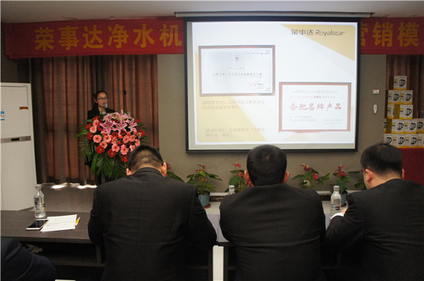 為應對2016凈水市場快速發展的要求,榮事達精心推出R8櫥下智能純水機、箱體LED純水機、速熱飲水機等多款新品,適應細分市場需求,助力終端網點提高市場占有率。在隨后的新品培訓環節,榮事達渠道開發部王部長和董部長對新品功能特點、市場定位進行了詳細講解。新款純水機配備RO反滲透技術及五級過濾系統,融智能顯示、自動化沖洗、防漏水設計于一體,并為用戶提供了櫥上、櫥下安置的不同選擇;新款飲水機采用厚膜加熱管原理,三秒即熱,并可實現多檔水溫水量調節,使得家庭飲水更方便。新品踐行了榮事達產品定制的研發理念,類型多樣,既包含了可攻克農村地區水壓不足不穩狀況的自吸增壓凈水機,也囊括了滿足城市居民追求健康時尚消費需求的高端機型,參會客戶通過了解,紛紛表示定制新品市場定位準確,前景極為廣闊。