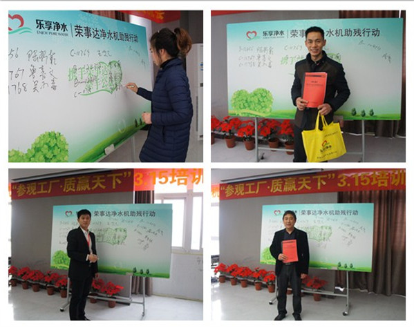 與會的許多意向客戶在一天半的觀摩、學習中,了解了榮事達水工業(yè)公司的過硬的軟、硬實力,見證了榮事達凈水機卓越的產品質量和完善的售后保證,更感受了公司作為凈水名企的品牌信譽、行業(yè)地位、社會擔當。會后,近九成意向客戶立即簽訂了合作協(xié)議,與榮事達攜手合作。為了酬謝廣大客戶,榮事達精心準備了四輪抽獎環(huán)節(jié),多款精美禮品悉數送出。其中,20多位合作客戶在終極大獎環(huán)節(jié)幸運抽得公司精心準備的4套凈水設備,用于開展“樂享凈水”助殘行動。